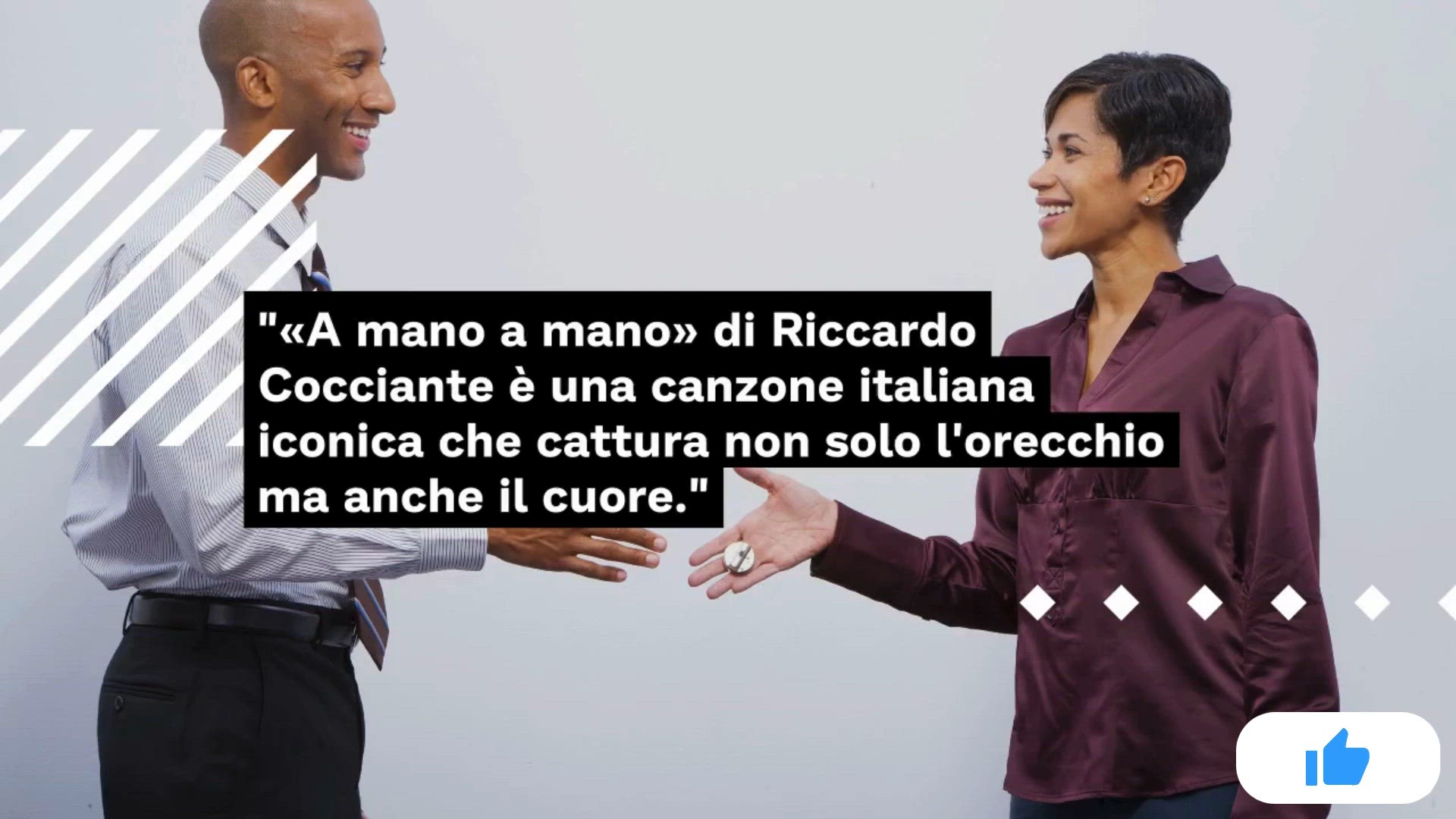 A mano a mano è una canzone italiana iconica di Riccardo Cocciante, nota per la sua melodia commovente e gli accordi emotivamente potenti che sottolineano il conflitto amoroso del protagonista.
