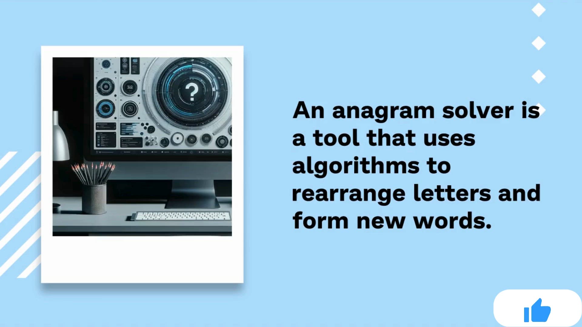 An Anagram Solver rearranges letters to find all possible words or phrases that can be formed from a given set of characters.